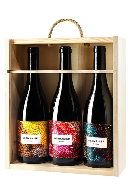 Kevin Germanier signe avec brio le design d'une édition limitée haute en couleur représentant les arômes complexes du vin se liant entre eux.
